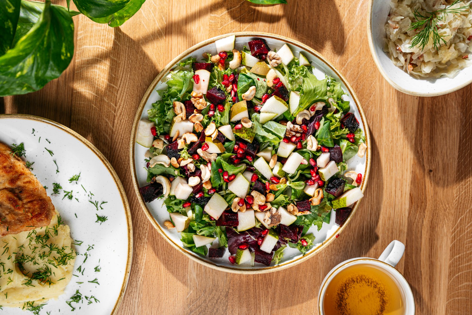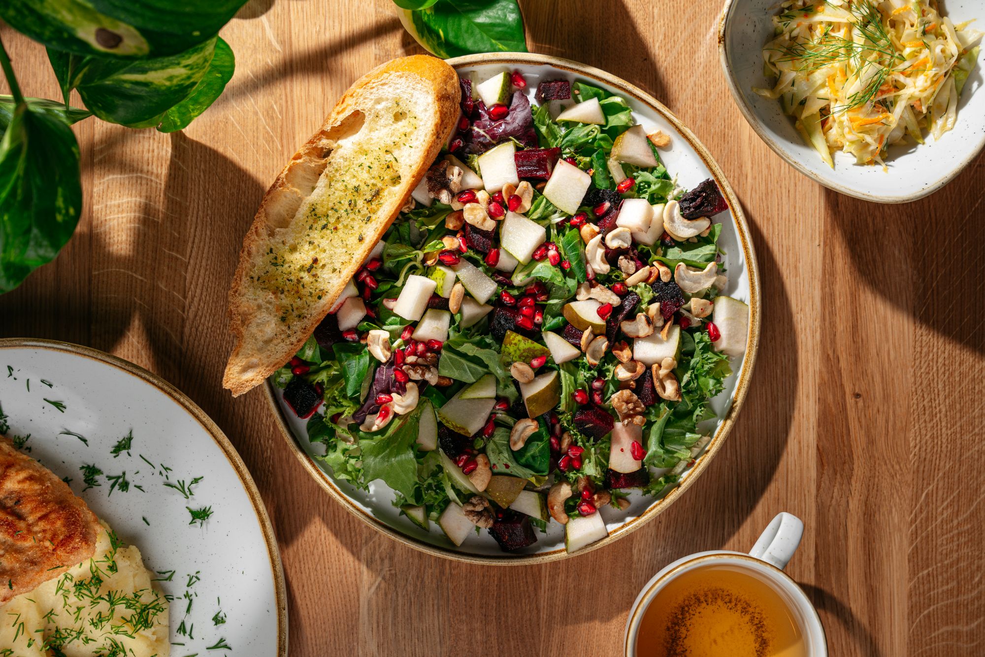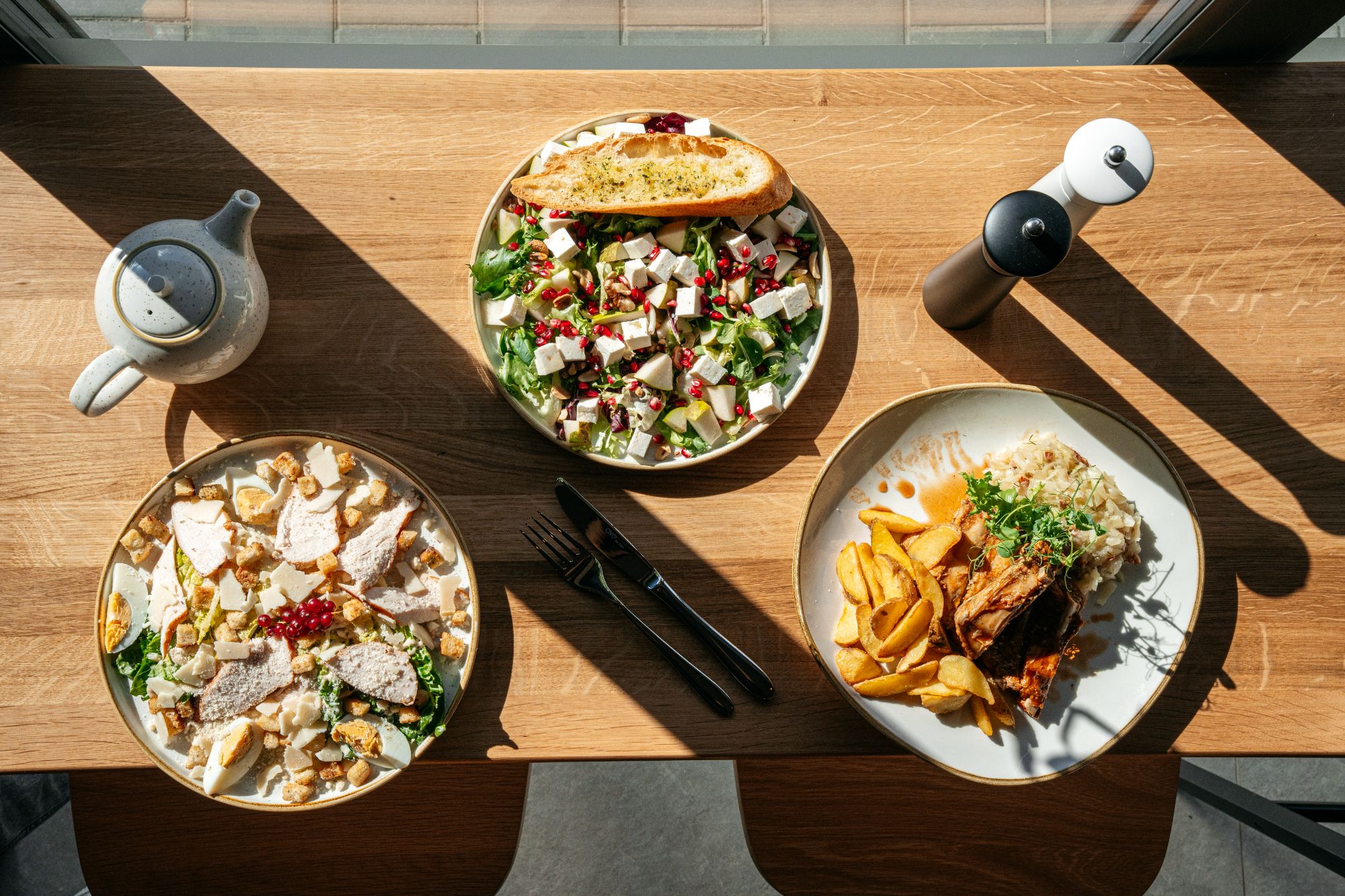 W ciągu dnia zapraszamy na sałatki, przystawki oraz zupy, które doskonale sprawdzają się jako lekki lunch lub uzupełnienie większego posiłku. Kolorowe warzywa, aromatyczne dodatki i starannie dobrane przyprawy tworzą dania pełne smaku i świeżości.